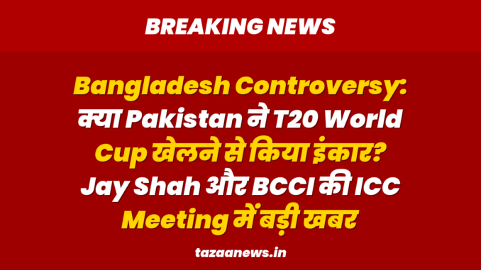 बांग्लादेश क्रिकेट बोर्ड (BCB) पिछले दो हफ्तों से यह कह रहा था कि वे T20 World Cup खेलने के लिए भारत नहीं जाएंगे। इस विवाद में अब पाकिस्तान की धमाकेदार एंट्री हो गई है। पाकिस्तान ने अब इंटरनेशनल क्रिकेट काउंसिल (ICC) को आंख दिखाई है। बांग्लादेश लगातार इस मुद्दे पर हल्ला बोल कर रहा था, और अब पाकिस्तान भी इसमें घी डाल रहा है। (Cricket controversy, T20 World Cup host, Asian Cricket)