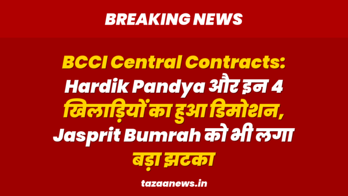 BCCI Central Contracts: Hardik Pandya और इन 4 खिलाड़ियों का हुआ डिमोशन, Jasprit Bumrah को भी लगा बड़ा झटका