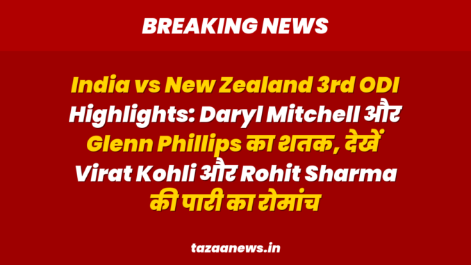 India vs New Zealand 3rd ODI Highlights: Daryl Mitchell और Glenn Phillips का शतक, देखें Virat Kohli और Rohit Sharma की पारी का रोमांच