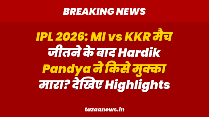 IPL 2026 का आगाज मुंबई इंडियंस ने शानदार जीत के साथ किया है। कोलकाता नाइटराइडर्स के खिलाफ एक रिकॉर्ड चेस दर्ज करके मुंबई इंडियंस ने अपना पहला मुकाबला जीत लिया। लेकिन इस जीत के बाद एक ऐसी तस्वीर सामने आई है, जिसने कई सवाल खड़े कर दिए हैं। यह तस्वीर हार्दिक पांड्या के एक खास इशारे से जुड़ी है।