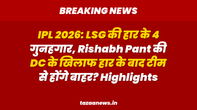 लखनऊ सुपर जाइंट्स (Lucknow Super Giants) एक अच्छी और दमदार टीम है, लेकिन इंडियन प्रीमियर लीग (IPL) 2025 में टीम फ्लॉप रही। वहीं IPL 2026 में भी लखनऊ सुपर जाइंट्स ने बहुत ही खराब शुरुआत की, उनका प्रदर्शन पूरी तरह से जीरो रहा। यह सवाल उठता है कि लखनऊ सुपर जाइंट्स की इस हार के चार मुख्य गुनहगार कौन हैं?