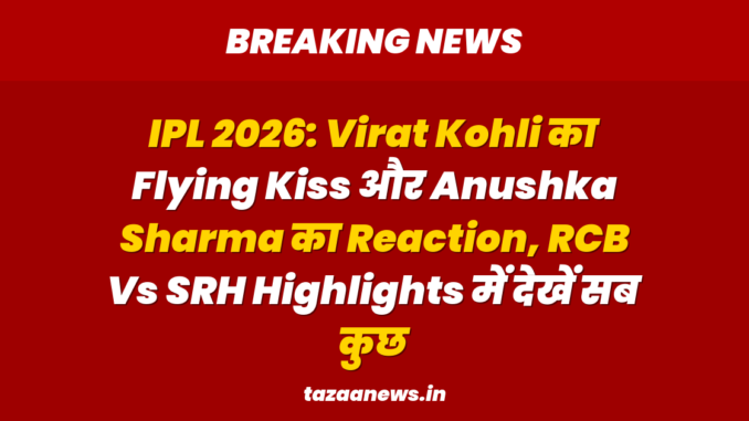 IPL 2026 का आगाज़ Royal Challengers Bangalore (RCB) के लिए जीत के साथ हुआ, और इस जीत के बाद जो क्षण सबसे ज्यादा चर्चा में रहा, वह था Virat Kohli और Anushka Sharma के बीच का प्यार भरा पल। Sunrisers Hyderabad के खिलाफ धमाकेदार जीत के बाद, किंग कोहली ने स्टैंड्स में मौजूद अपनी क्वीन अनुष्का शर्मा को एक Flying Kiss दी, जिसका जवाब अनुष्का ने भी उसी प्यार भरे अंदाज में दिया। यह पल फैंस के लिए बेहद खास था और दिखाता है कि दोनों के बीच का रिश्ता आज भी उतना ही मजबूत है, जितना पहले था।
