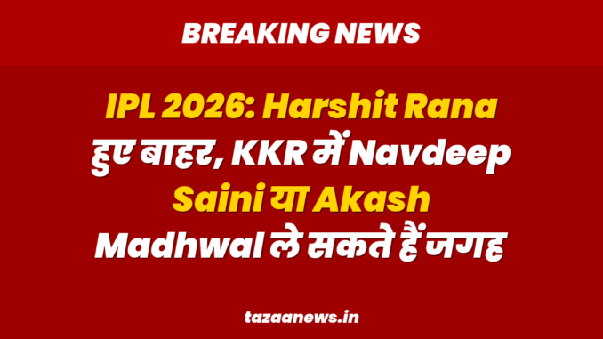 IPL 2026: Harshit Rana हुए बाहर, KKR में Navdeep Saini या Akash Madhwal ले सकते हैं जगह