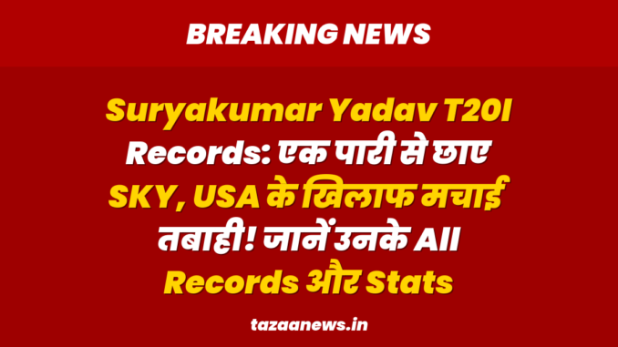 सूर्यकुमार यादव, टीम इंडिया के कप्तान, की धमाकेदार पारी के दम पर टीम इंडिया ने यूएसए के खिलाफ अपना पहला T20 वर्ल्ड कप मुकाबला जीत लिया। इस जीत के साथ ही, सूर्यकुमार यादव ने कई बड़े रिकॉर्ड अपने नाम कर लिए हैं। उन्होंने रोहित शर्मा और युवराज सिंह के रिकॉर्ड तोड़े, साथ ही बाबर आजम और विराट कोहली को भी पीछे छोड़ दिया। स्काई ने अपनी एक ही पारी से पूरी क्रिकेट की रिकॉर्ड बुक को हिला कर रख दिया है। Cricket Records यह सभी नए रिकॉर्ड अब वर्ल्ड रिकॉर्ड की बुक्स में दर्ज हो गए हैं। आइए जानते हैं सूर्यकुमार यादव द्वारा अपनी इस एक पारी के दम पर बनाए गए सभी रिकॉर्ड्स के बारे में।