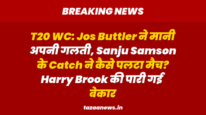 इंग्लैंड की हार में सबसे बड़ा फैक्टर Harry Brook mistake थी। खुद कप्तान हैरी ब्रूक के लिए यह वर्ल्ड कप अब एक बुरे सपने से कम नहीं होगा। मैच खत्म होने के बाद उन्होंने स्वीकार किया कि उन्होंने Sanju Samson का कैच टपका कर बहुत बड़ी गलती की। यह एक आसान सा कैच था, जो डौफर आर्चर की गेंद पर मिड-ऑन पर खड़े होने पर हाथ में आया और छटक गया। यह Dropped catch इंग्लैंड की टीम पर सबसे ज्यादा भारी पड़ गया। अगर उस वक्त संजू सैमसन को रोक लिया जाता, तो शायद कहानी कुछ और होती।