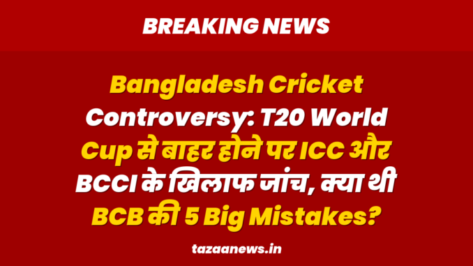 7 फरवरी 2026 से T20 World Cup 2026 का आगाज़ होना है, लेकिन इस बड़े इवेंट से पहले Bangladesh Cricket Board (BCB) से जुड़ा एक बड़ा ड्रामा सामने आया है। सवाल यह है कि क्या इंटरनेशनल क्रिकेट काउंसिल (International Cricket Council (ICC)) और Board of Control for Cricket in India (BCCI) बांग्लादेश के आगे झुक गई है? आइए जानते हैं इस पूरे मामले से जुड़ी पांच गलतियां और क्या है इसकी सच्चाई।