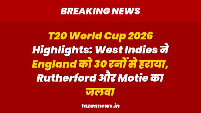 T20 वर्ल्ड कप 2026 में एक ऐसा मुकाबला देखने को मिला जिसने सबको चौंका दिया। यह एक “सबसे बड़ा चमत्कार” था जहाँ वेस्ट इंडीज की क्रिकेट टीम ने “वर्ल्ड चैंपियन” इंग्लैंड को हरा दिया। इंग्लैंड, जो 50 ओवर का “वर्ल्ड कप” और “T20 वर्ल्ड कप” दोनों जीत चुकी है, उसे वेस्ट इंडीज ने करारी शिकस्त दी। यह “T20 World Cup” मैच एक चैंपियन टीम की तरह खेला गया।