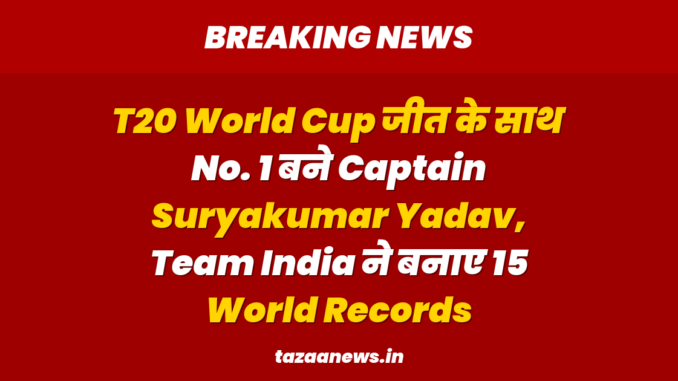 8 मार्च 2026 को भारतीय टीम ने अहमदाबाद के नरेंद्र मोदी स्टेडियम में T20 World Cup 2026 का फाइनल जीतकर इतिहास रच दिया। भारत ने न्यूजीलैंड को 96 रनों से करारी शिकस्त दी और इस शानदार जीत के साथ कई बड़े Cricket Records अपने नाम किए। कप्तान सूर्यकुमार यादव के नेतृत्व में हर खिलाड़ी ने बेहतरीन प्रदर्शन किया और Team India ने ऐतिहासिक जीत हासिल की। आइए नजर डालते हैं उन सभी रिकॉर्ड्स पर जो टीम इंडिया ने T20 वर्ल्ड कप के खिताब के साथ अपने नाम किए।