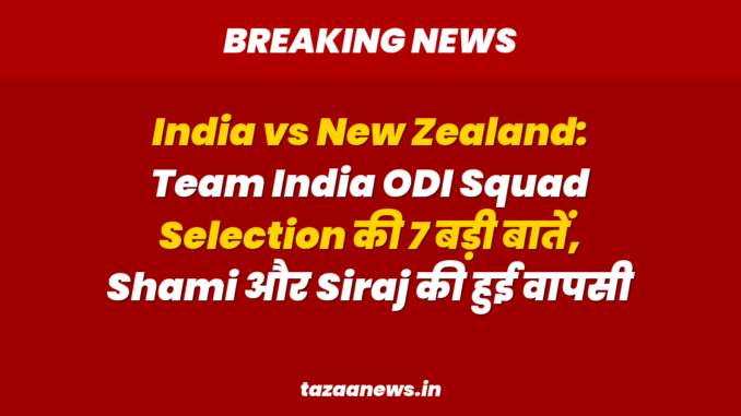 न्यूजीलैंड के खिलाफ तीन मैचों की ODI series के लिए Team India का squad सामने आ चुका है। इस स्क्वाड में कई चौंकाने वाले फैसले लिए गए हैं, जबकि कुछ खिलाड़ियों की वापसी हुई है। आइए जानते हैं इस नई टीम की सात बड़ी बातें जो भारतीय क्रिकेट फैंस के लिए चर्चा का विषय बनी हुई हैं।