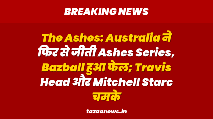 इंग्लैंड का ‘बैजबॉल’ फॉर्मेट (Bazball strategy) इस सीरीज में पूरी तरह फेल हो गया है। अब रैंडन मकालम और बेन स्टोक्स से सवाल-जवाब होने वाले हैं कि वे ऐसी कौन सी क्रिकेट खेल रहे थे, जहाँ दो-दो दिन में मैच खत्म हो गए और वे एक मैच को ड्रॉ तक नहीं करवा पाए। ट्रेविस हेड और मिचल स्टार्क के दमदार प्रदर्शन के दम पर ऑस्ट्रेलिया ने एक बार फिर से एशेज सीरीज (Ashes Series) को अपने नाम कर लिया है। The performance raised concerns about England’s approach to Test Cricket.