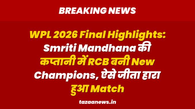 रॉयल चैलेंजर्स बैंगलोर (आरसीबी) की महिला टीम ने 2026 में WPL यानी वुमन्स प्रीमियर लीग का खिताब जीतकर इतिहास रच दिया। यह एक ऐसा फाइनल मुकाबला था जिसमें लग रहा था कि आरसीबी हार जाएगी, लेकिन टीम ने जोरदार वापसी करते हुए दिल्ली कैपिटल्स को मात दी। यह जीत सिर्फ एक ट्रॉफी नहीं, बल्कि एक अद्भुत कमबैक कहानी है। WPL 2026 Final. रॉयल चैलेंजर्स बैंगलोर की पुरुष टीम ने 2025 में आईपीएल जीता था, और 2026 में महिला टीम ने WPL ट्रॉफी पर कब्जा जमा लिया।